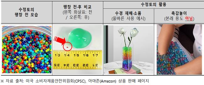 • - 물 흡수하면 100배 팽창… 삼킬 경우 장 폐색 등 중대 상해 우려