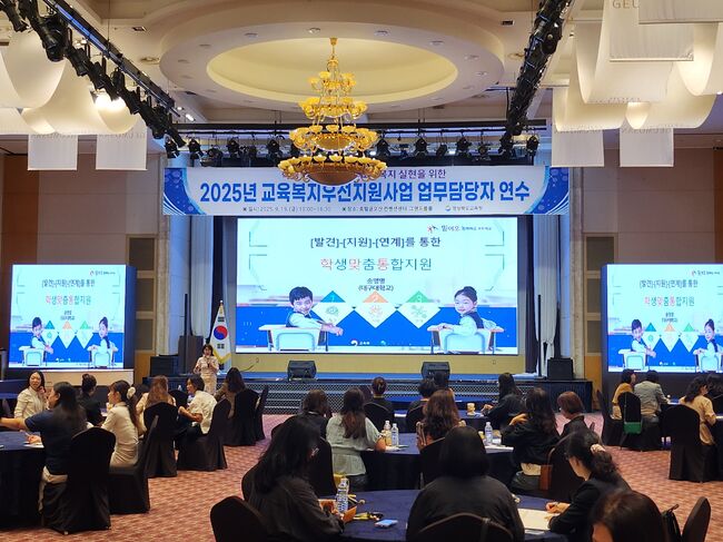 경북교육청이 교육복지우선지원사업 대상학교 담당자 연수를 진행하고 있는 모습경북교육청(교육감 임종식)은 19일 호텔금오산에서 교육복지우선지원사업 대상학교 업무담당자 100명을 대상으로 연수를 실시했다고 22일 밝혔다.
