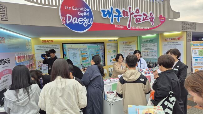 대구시교육청이 APEC 2025 K-EDU EXPO에서 운영한 ‘대구마음교육’ 홍보·체험 부스에서 관람객들이 ‘AI 마음약국’ 등 체험 프로그램에 참여하고 있다.대구시교육청은 10월 26일(일)부터 28일(화)까지 경상북도교육청 발명교육체험관에서 열리는 APEC 2025 KOREA ‘K-EDU EXPO’에 참여하여, ‘미래를 배운다. 함께 성장한다. 대구마음교육’을 주제로 한 홍보·체험 부스를 운영한다고 밝혔다.