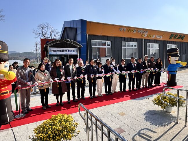 “중모교육의 새로운 시작” 식생활관·병설유치원 증축 준공식 테이프 커팅 이날 행사에는 상주교육지원청 김종현 교육장과 지역 유관기관장, 학부모 등이 참석해 축하와 응원을 전했다.