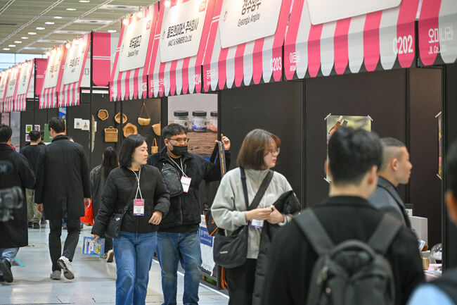 행사장을 찾은 관람객들이 여러 기업.기관 부스를 둘러보며 전시 품목을 살펴보고 있다.