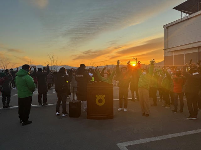 진량읍 새마을부녀회와 청년회 주관으로 열린 해맞이 행사에서 주민들이 하나로마트 앞마당에서 떠오르는 일출을 바라보며 만세삼창을 하고 있다. 이날 행사에는 관내 주요 기관 단체장과 읍민 1,000여 명이 참석해 병오년의 첫 태양을 함께 맞이하며 새해 소망을 기원했다.