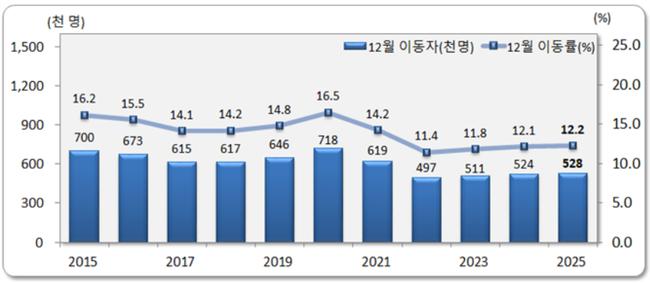 • - 이동률 12.2%로 0.1%p↑…시도내 이동은 감소, 시도간은 4.5% 증가