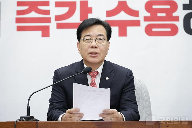 송언석 원내대표는 이날 국회에서 열린 원내대책회의 모두발언에서 정부가 발표한 도심 공공부지 활용 6만호 공급 방안과 관련해 “숫자만 보면 매우 야심 찬 계획이지만, 재개발 규제 완화가 빠지면서 정책의 실효성에 한계가 뚜렷하게 느껴진다”고 말했다.