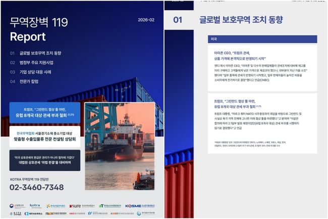 산업통상자원부는 2월 4일부터 기존 ‘관세 대응 119’를 ‘무역장벽 119’로 확대 개편해 관세와 비관세를 포괄하는 범정부 무역장벽 대응체계를 구축한다고 밝혔다.