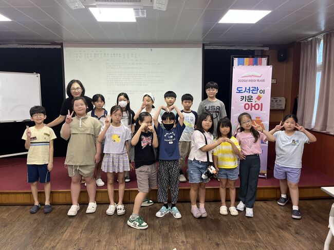 금호도서관, ‘도서관이 키운 아이’ 어린이 독서회 운영 금호도서관에서 열린 어린이 독서 프로그램에 참여한 초등학생들이 독서 활동을 마친 뒤 기념촬영을 하고 있다.